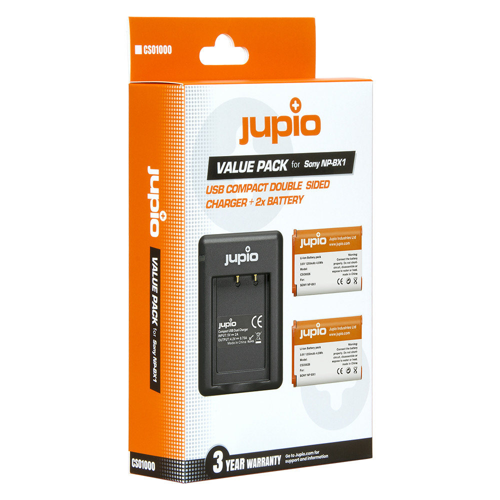 (Jupio) Jupio Value Pack: 2x NP-BX1 akkumulátor + kompakt USB kétoldalas töltő Ean Kód: 8718503027814