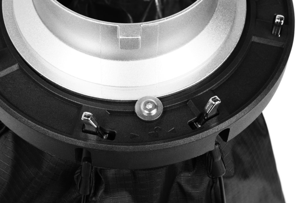 A gyorsan nyitható Softbox egyszerűen és gyorsan felállítható, mint egy esernyő, a merevítők egy kattintással a helyükre pattannak. A merevítők egyszerűen egy-egy gomb nyomásra kioldnak.
