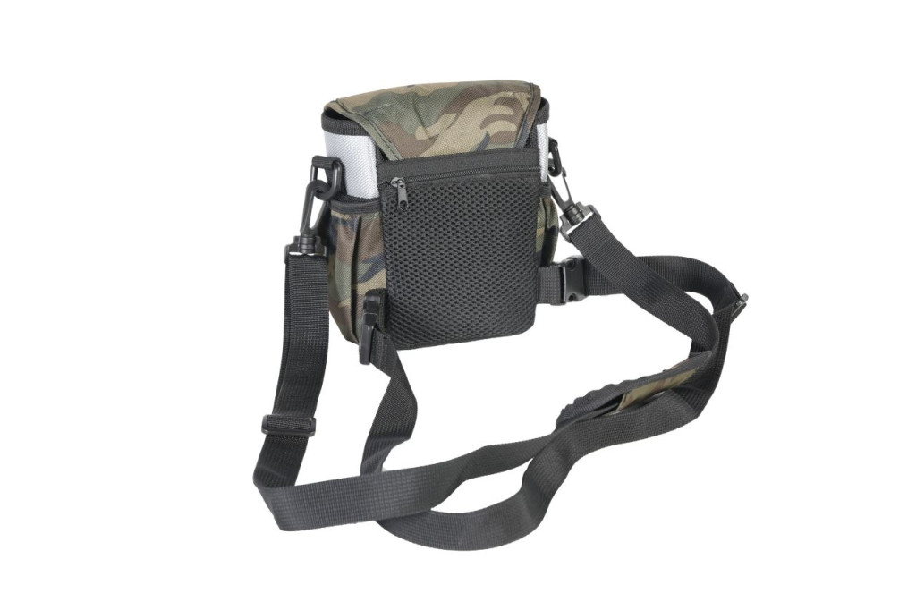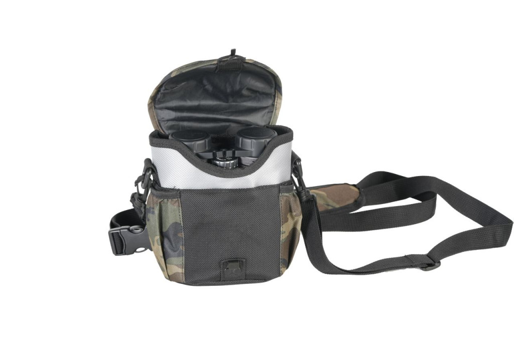 A táska merevített, párnázott belső tere hatékony védelmet nyújt a binokuláris eszközöknek ütődés, por és kisebb fröccsenések ellen.