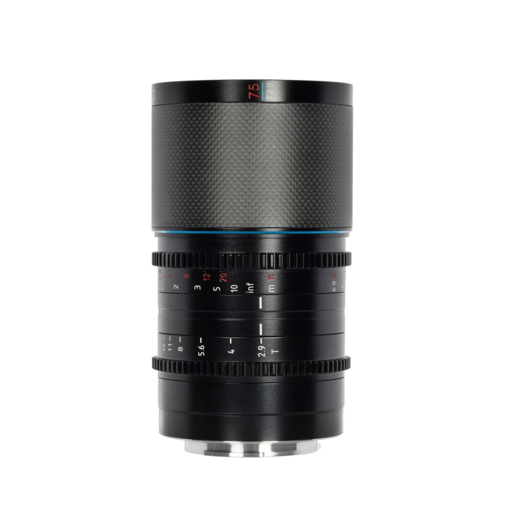 SIRUI Saturn 75mm T2.9 1.6x full frame, carbon vázú anamorf objektív (Fuji X, kék becsillanás)
